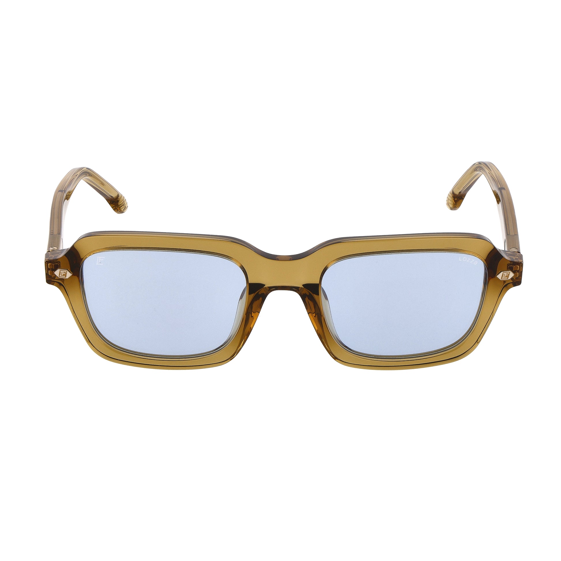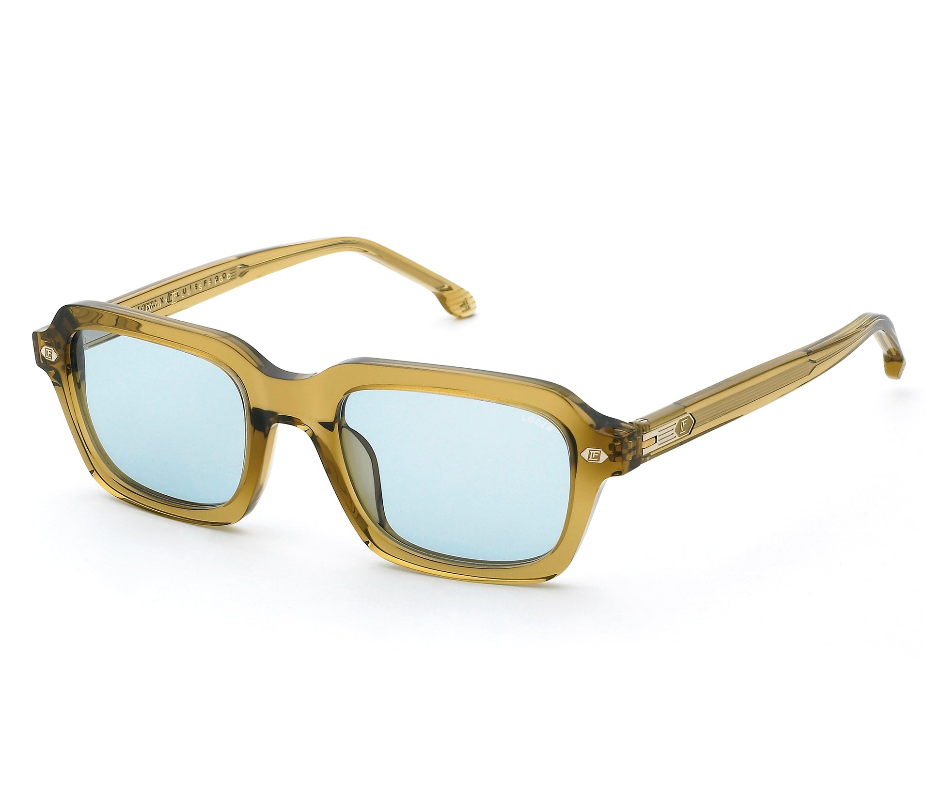 Gafas de forma rectangular con perfiles suavemente biselados, con un refinado detalle metálico en el frontal: el monograma LF enmarcado por las dos “L” de Lozza. En las varillas, el monograma Lozza x LF se combina con el característico adorno de cinco líneas de la marca, un homenaje a las cinco letras del nombre Lozza. Las lentes están personalizadas con el grabado LF a la derecha y el logotipo de Lozza a la izquierda, añadiendo un toque de exclusividad y reforzando la identidad compartida de la colaboración.