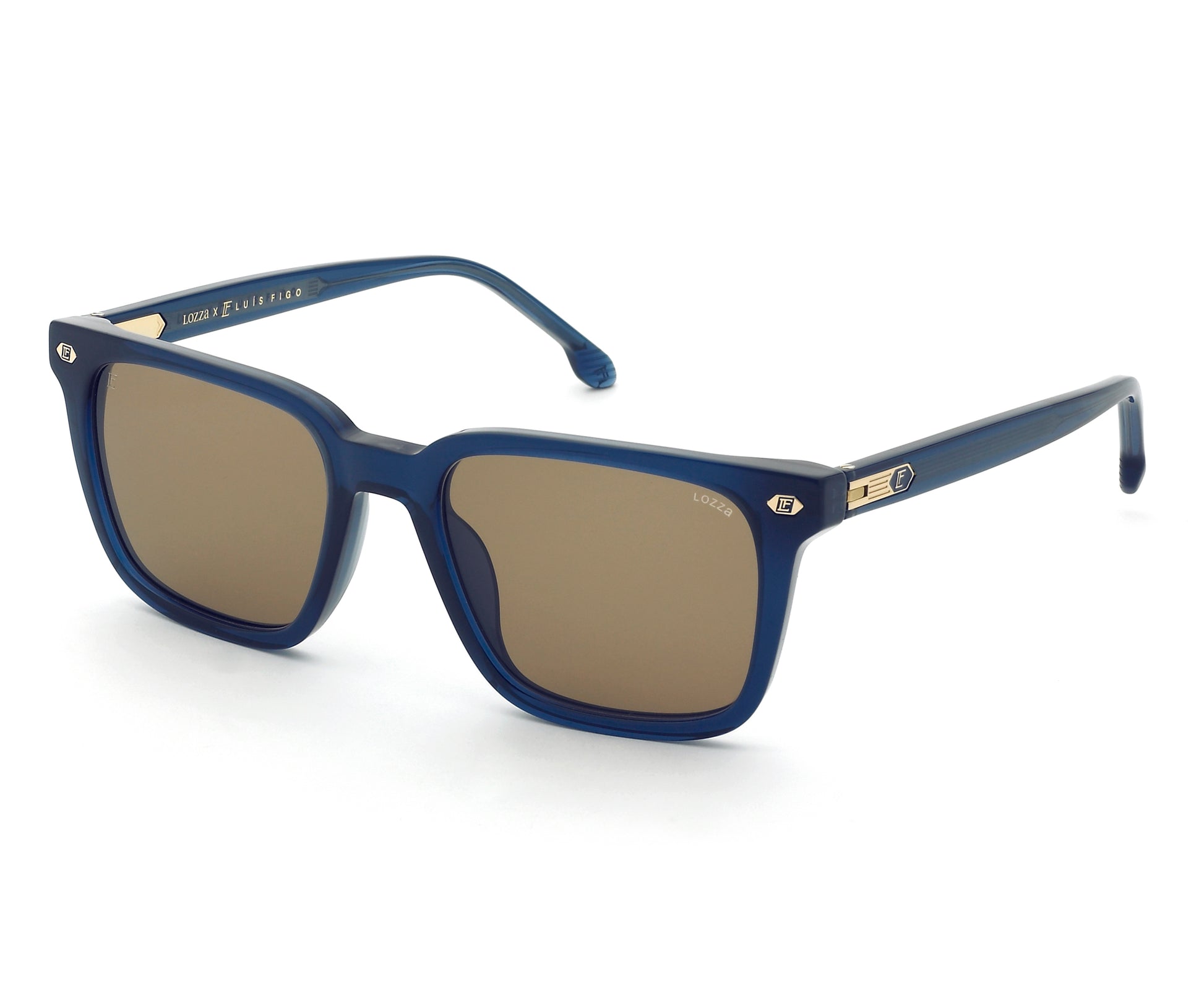 In the transparent versions, the temples reveal the decorated metal core. The lenses feature the LF monogram on the left and the Lozza logo on the right, while the "Lozza x LF Luís Figo" engraving on the inside of the left temple celebrates the collaboration with the sporting icon.